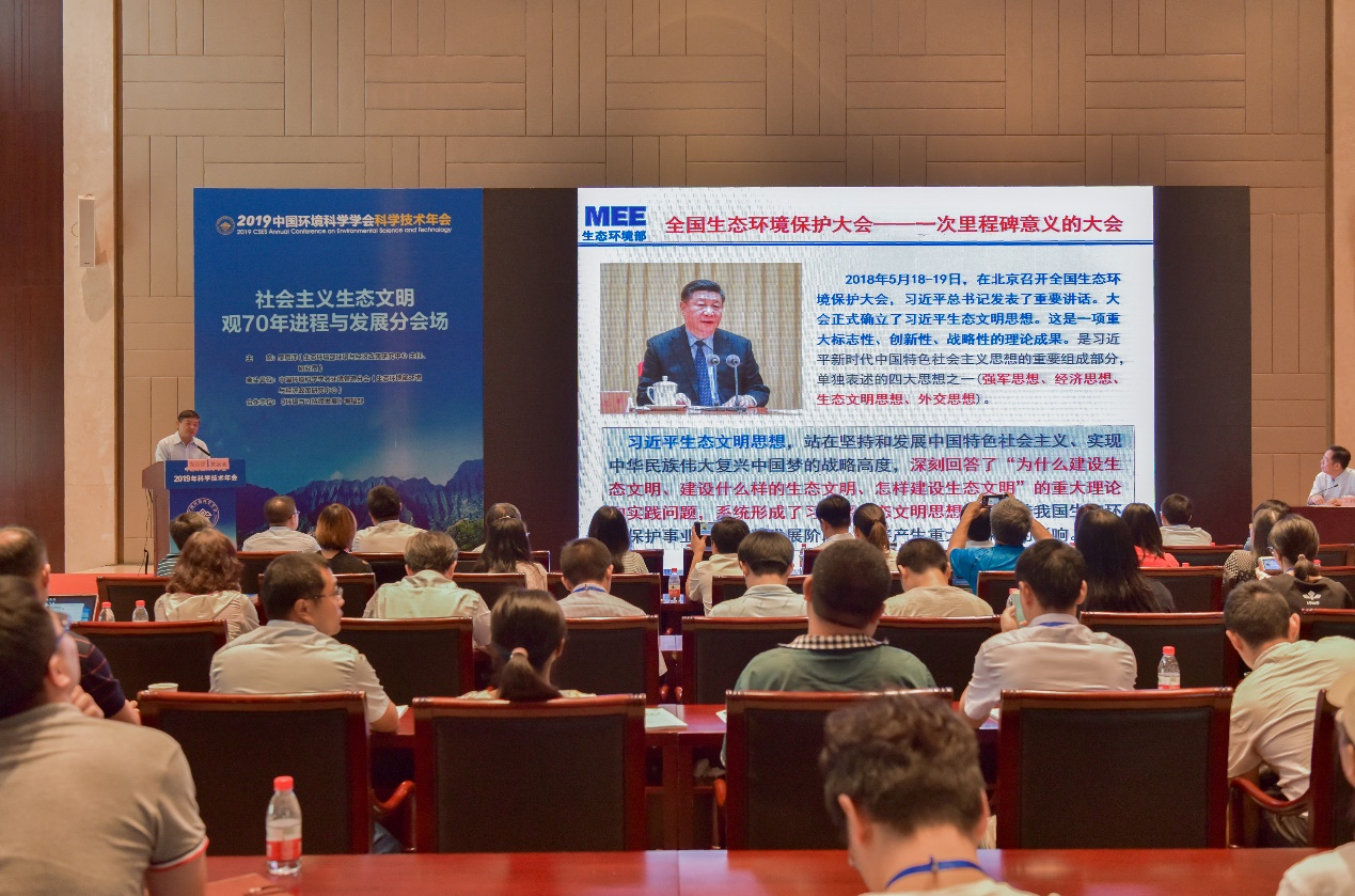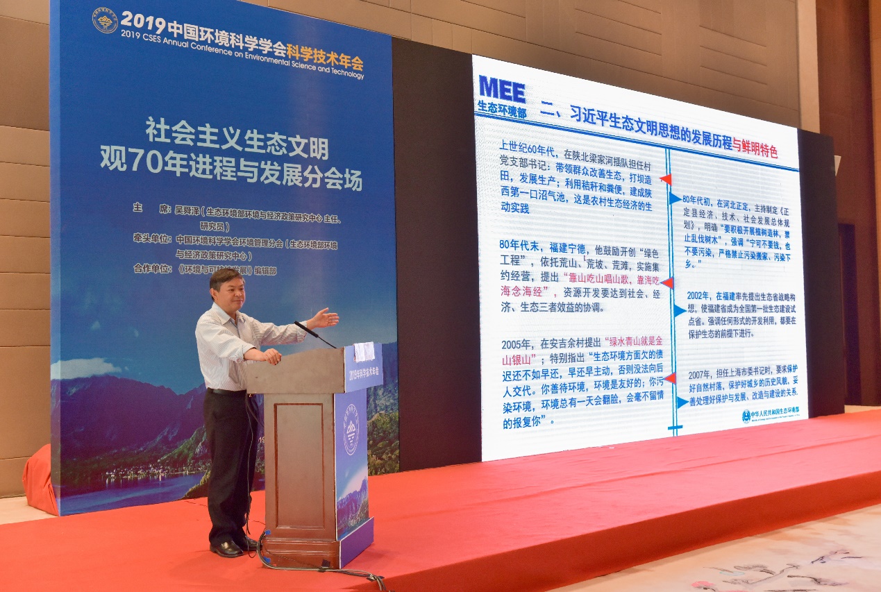 2019年8月24日,中國環(huán)境科學學會環(huán)境管理分會、生態(tài)環(huán)境部政研中心、《環(huán)境與可持續(xù)發(fā)展》編輯部在陜西西安聯(lián)合舉辦“社會主義生態(tài)文明觀70年進程與發(fā)展”——中國環(huán)境科學學會2019年科學與技術年會環(huán)境管理分會場年會。生態(tài)環(huán)境部副部長黃潤秋出席會議并發(fā)表主旨報告。會議由政研中心主任吳舜澤主持,來自生態(tài)環(huán)境部及直屬單位、地方環(huán)保部門、企事業(yè)單位、高校、科研院所以及社會團體、媒體等百余名代表參加了會議。
