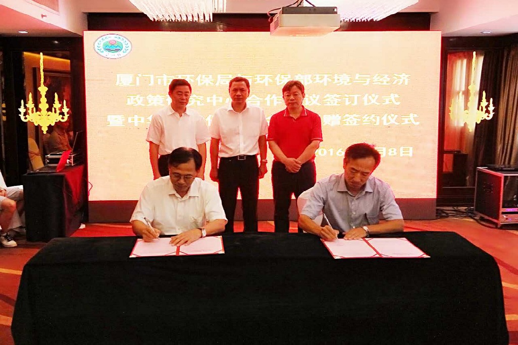 2016年9月8日-9日,環(huán)境保護(hù)部環(huán)境與經(jīng)濟(jì)政策研究中心與廈門市環(huán)保局簽署綠色發(fā)展戰(zhàn)略合作框架協(xié)議,并舉行“環(huán)境保護(hù)部環(huán)境與經(jīng)濟(jì)政策研究中心綠色發(fā)展(廈門)創(chuàng)新研究與示范基地”揭牌儀式。“十三五”期間,雙方將在綠色發(fā)展及環(huán)境保護(hù)政策創(chuàng)新研究和示范、對臺及國際綠色發(fā)展與環(huán)境保護(hù)合作與交流、綠色發(fā)展與環(huán)境保護(hù)能力建設(shè)與培訓(xùn)等領(lǐng)域開展長期合作,積極推動廈門市乃至全國的生態(tài)文明建設(shè)。